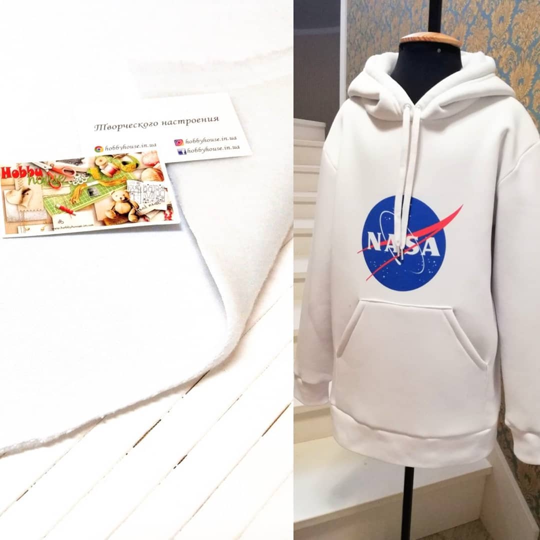 Теплый, натуральный трикотаж футер с начесом отлично подойдет для теплых костюмов, свитшотов, толстовок.