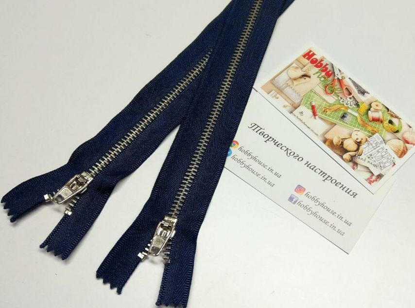 Молния джинсовая металл никель синяя