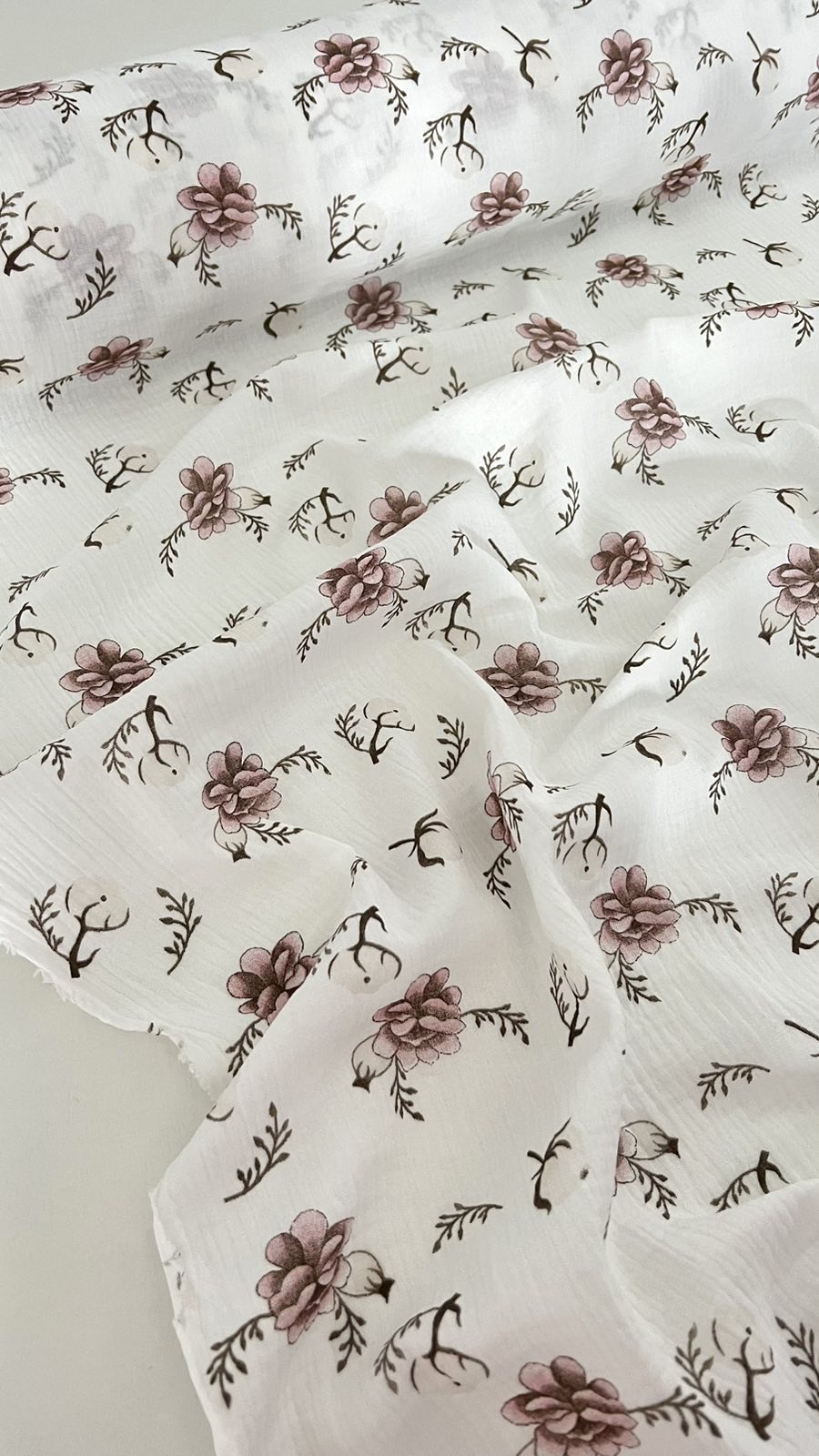 Муслин двухслойный магнолии на белом 135 см арт. 3791