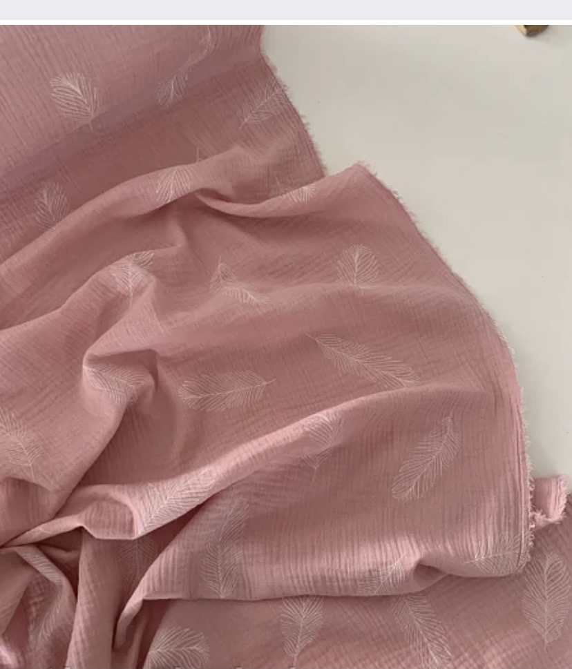 Муслин двухслойный перья на розовом 135 см арт. 3800