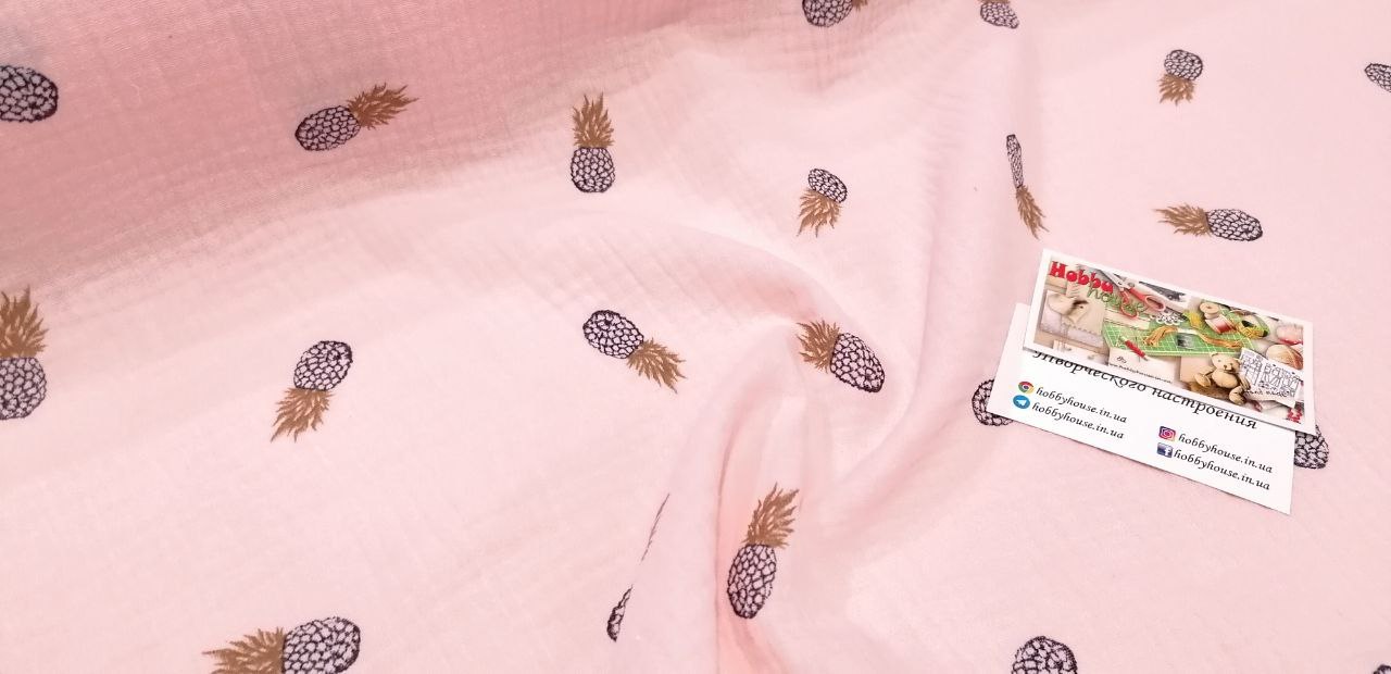 Муслин двуслойный нежно-розовый ананасы