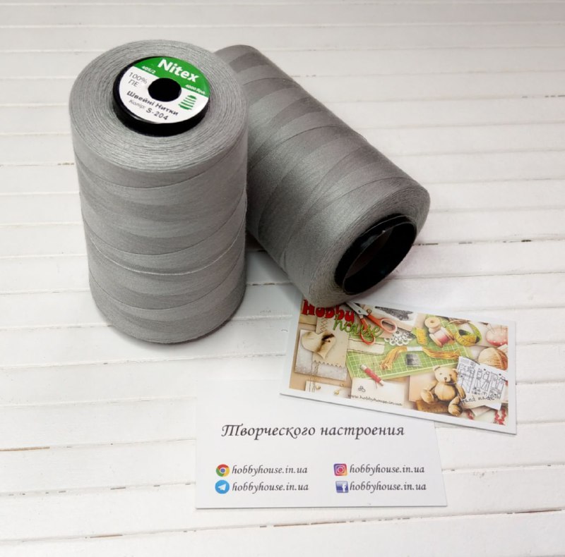 Нитки для шиття Nitex 4000 ярдів 40/2 S-204 сірий арт. 2659