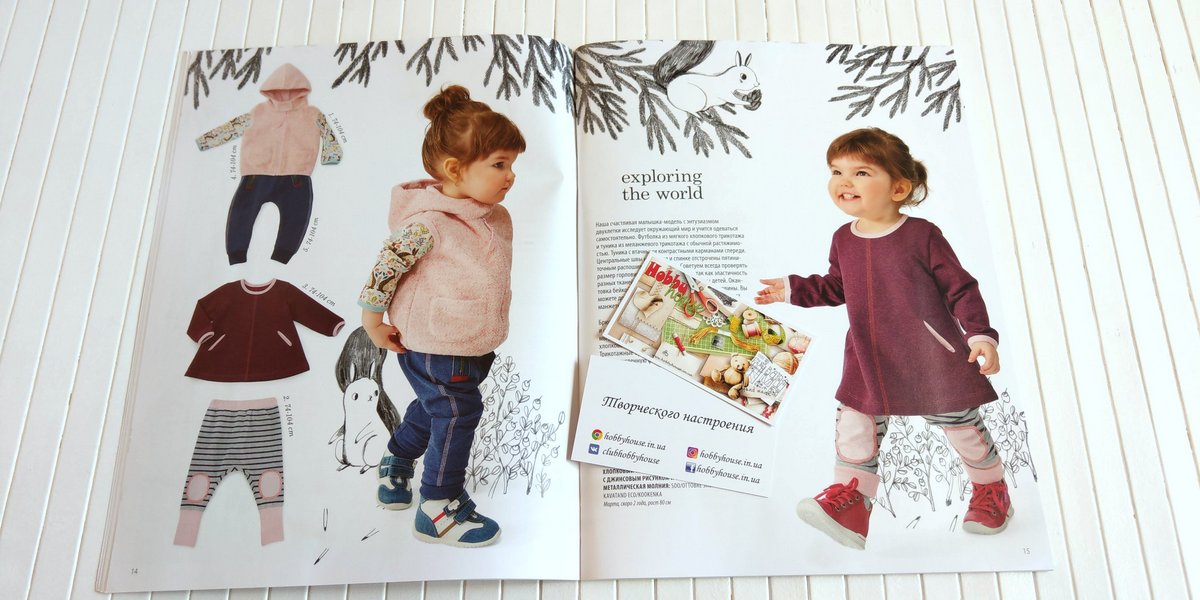 Наши энергичные малыши-модели учатся одеваться самостоятельно. Трикотажные брюки с забавным акцентом, брюки из полосатого трикотажа, две футболки, свитер для юного рыбака, безрукавка с капюшоном, трикотажная туника и актуальный комбинезон из велюрового трикотажа. Осенняя коллекция для школы и досуга. Платья из мериносовой шерсти и трикотажа, спортивная майка, клетчатые трикотажные брюки и трикотажный костюм с розами. Функциональные брюки для походов, разноцветная футболка-реглан, трикотажная толстовка с капюшоном, безрукавка.